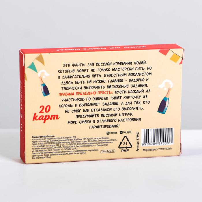 Купить игра для компании "фанты звезда бокала" 20 карт от 120 руб. с доставкой до пункта выдачи в Бабушкине. Интернет магазин ДекаМаркет. Оплата при получении.