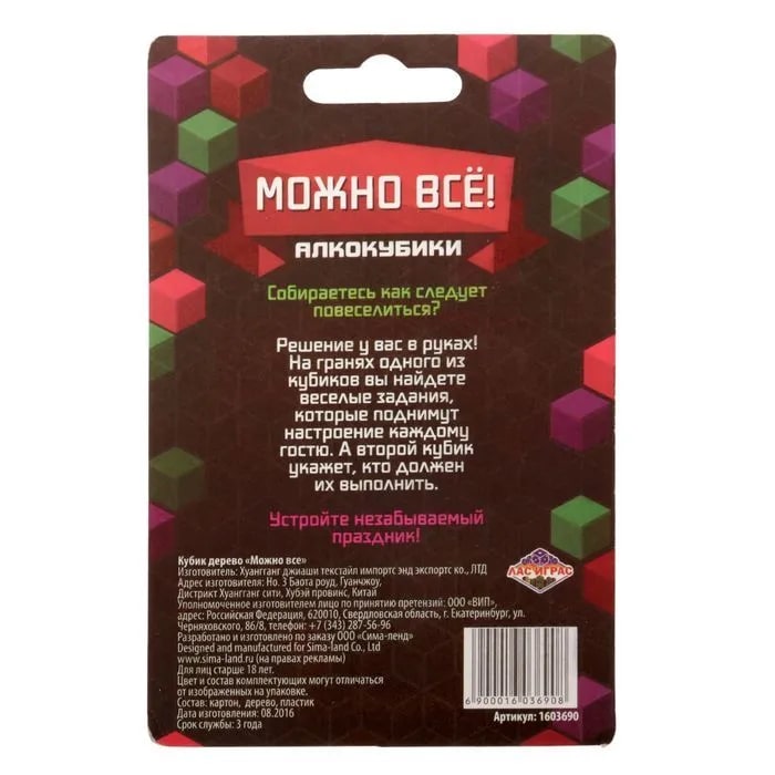 Купить кубик "можно все", алкокубики для принятия решений от 60 руб. с доставкой до пункта выдачи в Бабушкине. Интернет магазин ДекаМаркет. Оплата при получении.
